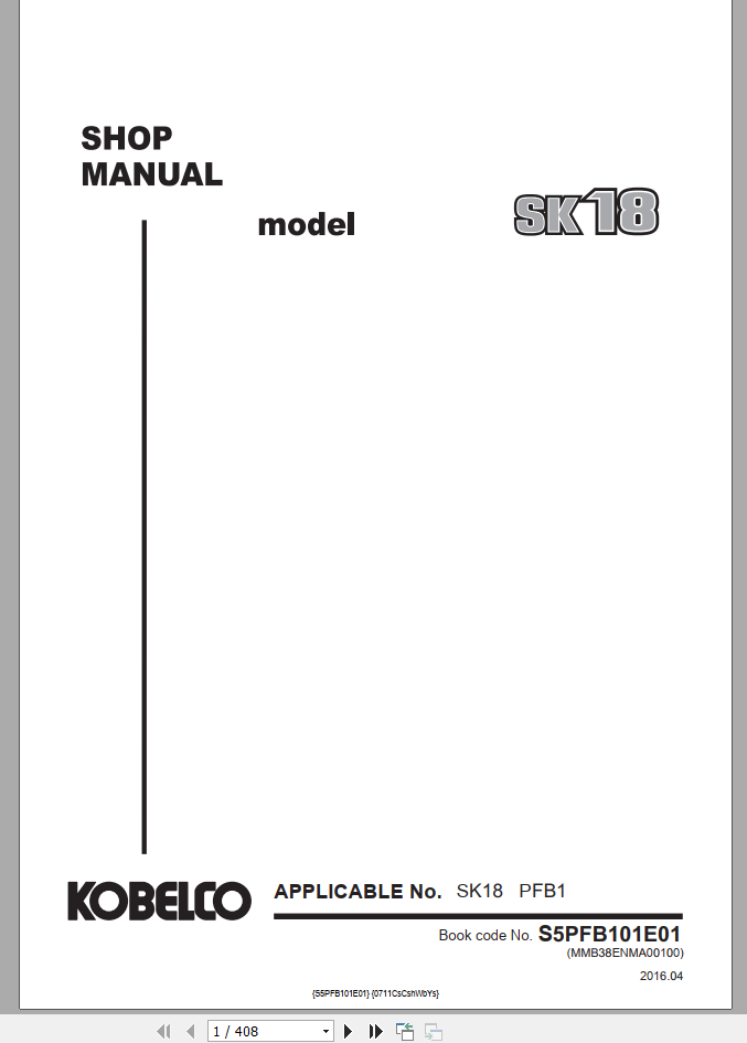 Kobelco SK18-1E Shop Manual S5PFB101E014