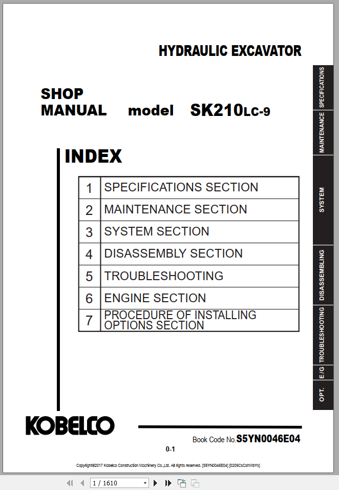 Kobelco SK210LC-9 Shop Manual S5YN0046E04