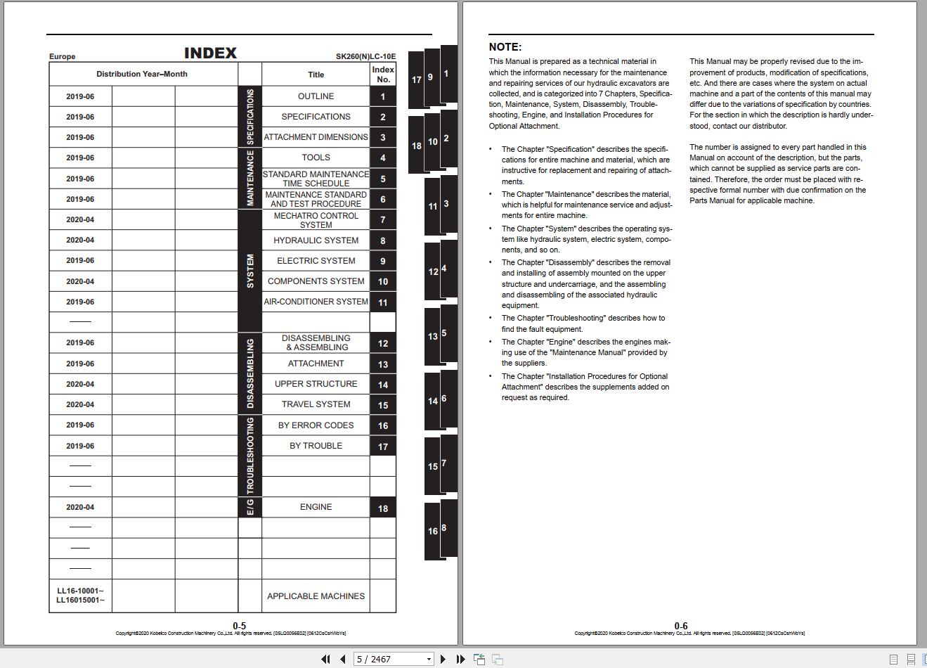 The Bookmarks of Kobelco SK260(N)LC-10E Shop Manual :