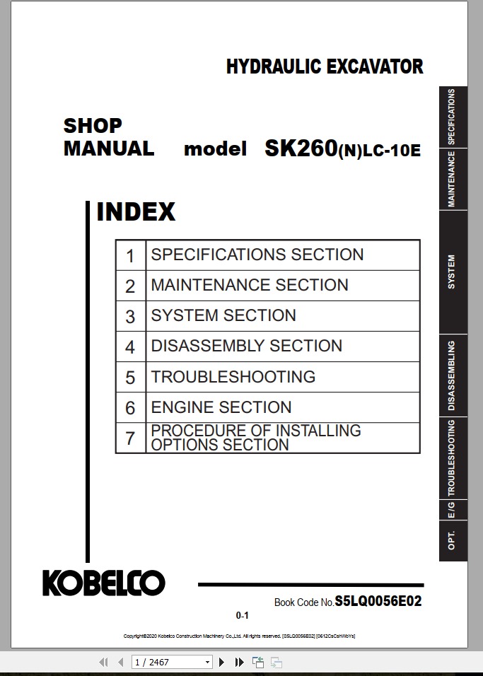 Kobelco SK260(N)LC-10E Shop Manual S5LQ0056E02