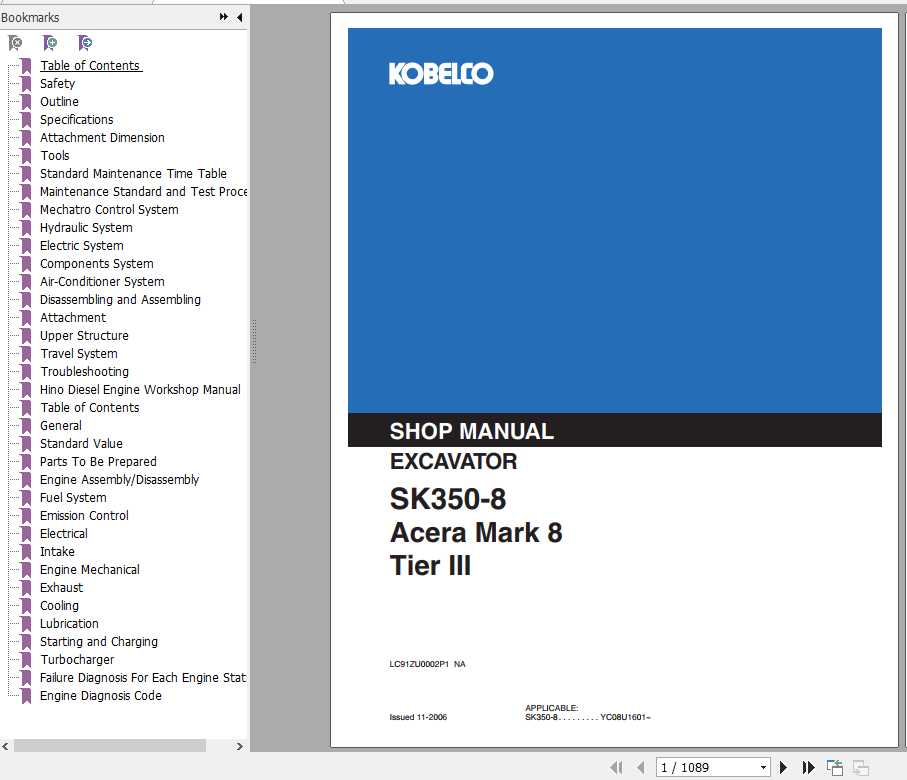 Kobelco SK350-8 Acera Mark 8 Tier 3 Shop Manual YC08U1601