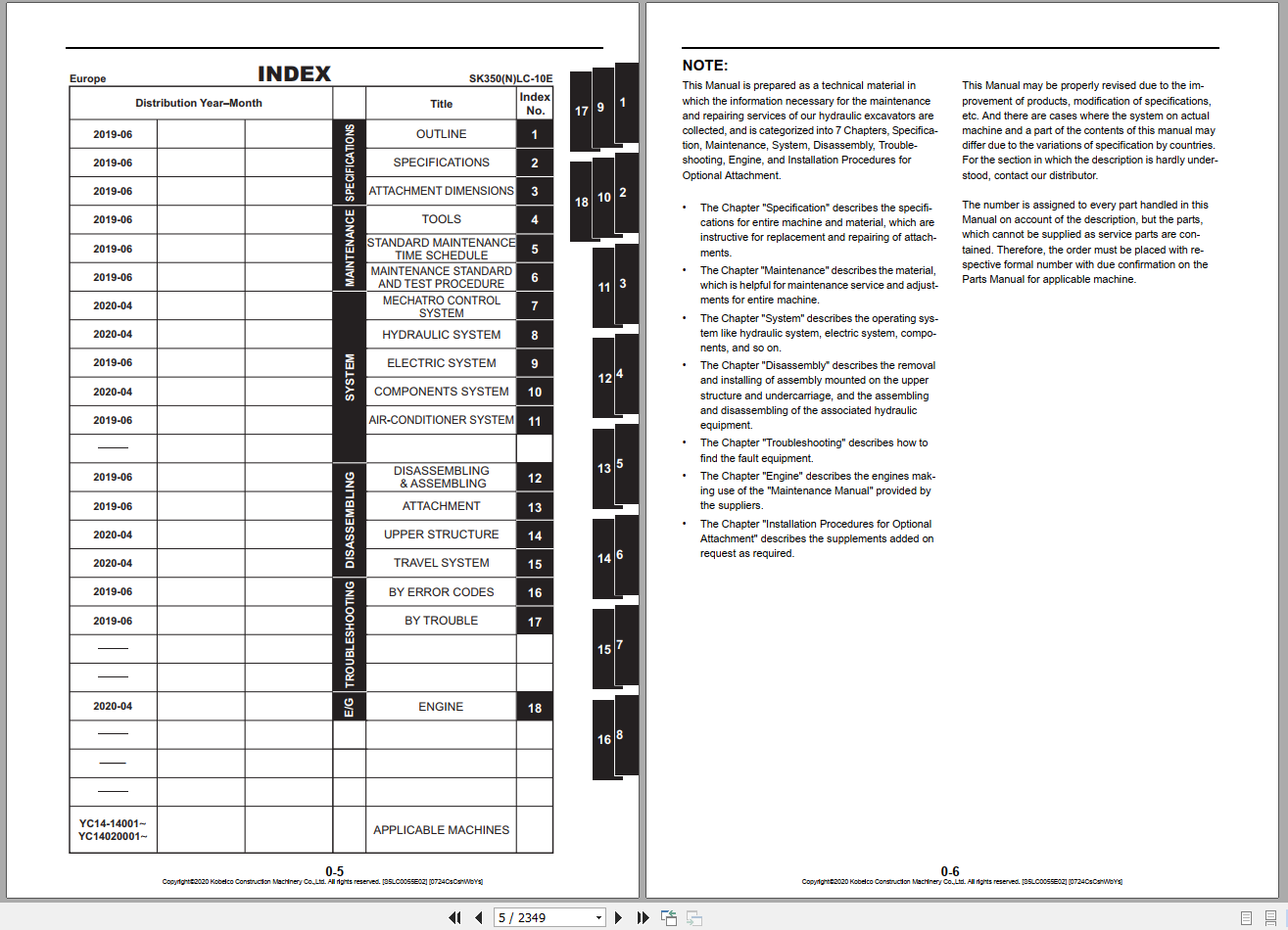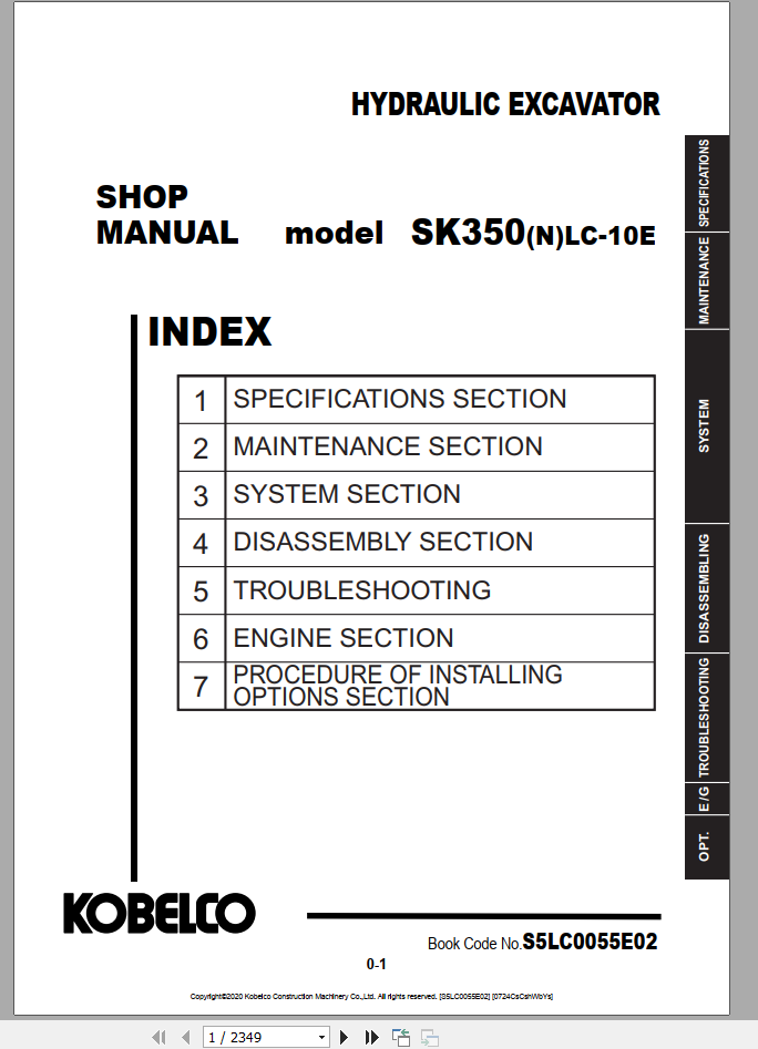 The Bookmarks of Kobelco SK350(N)LC-10E Shop Manual S5LC0055E02: