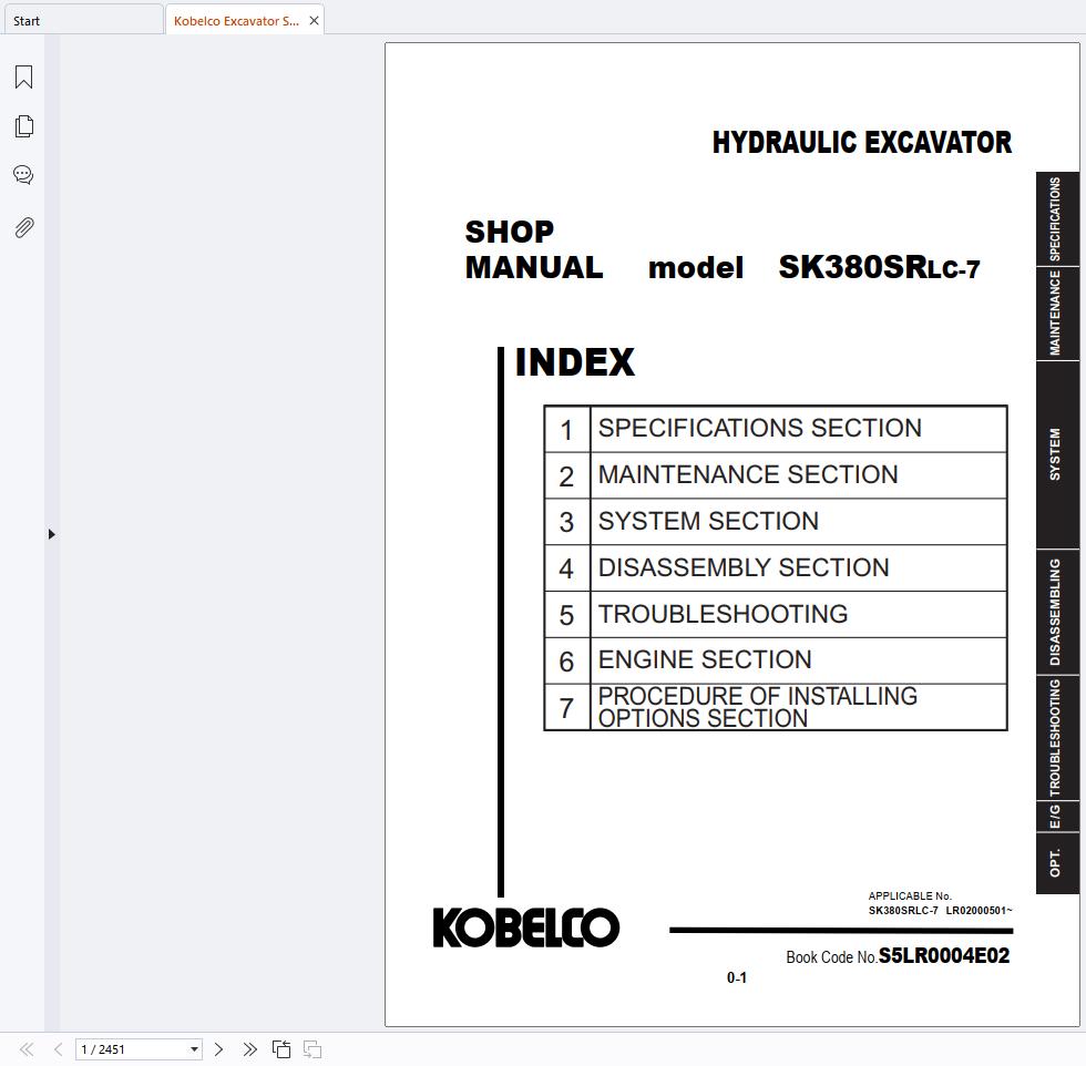Kobelco SK380SRLC-7 Excavator Shop Manual S5LR0004E02