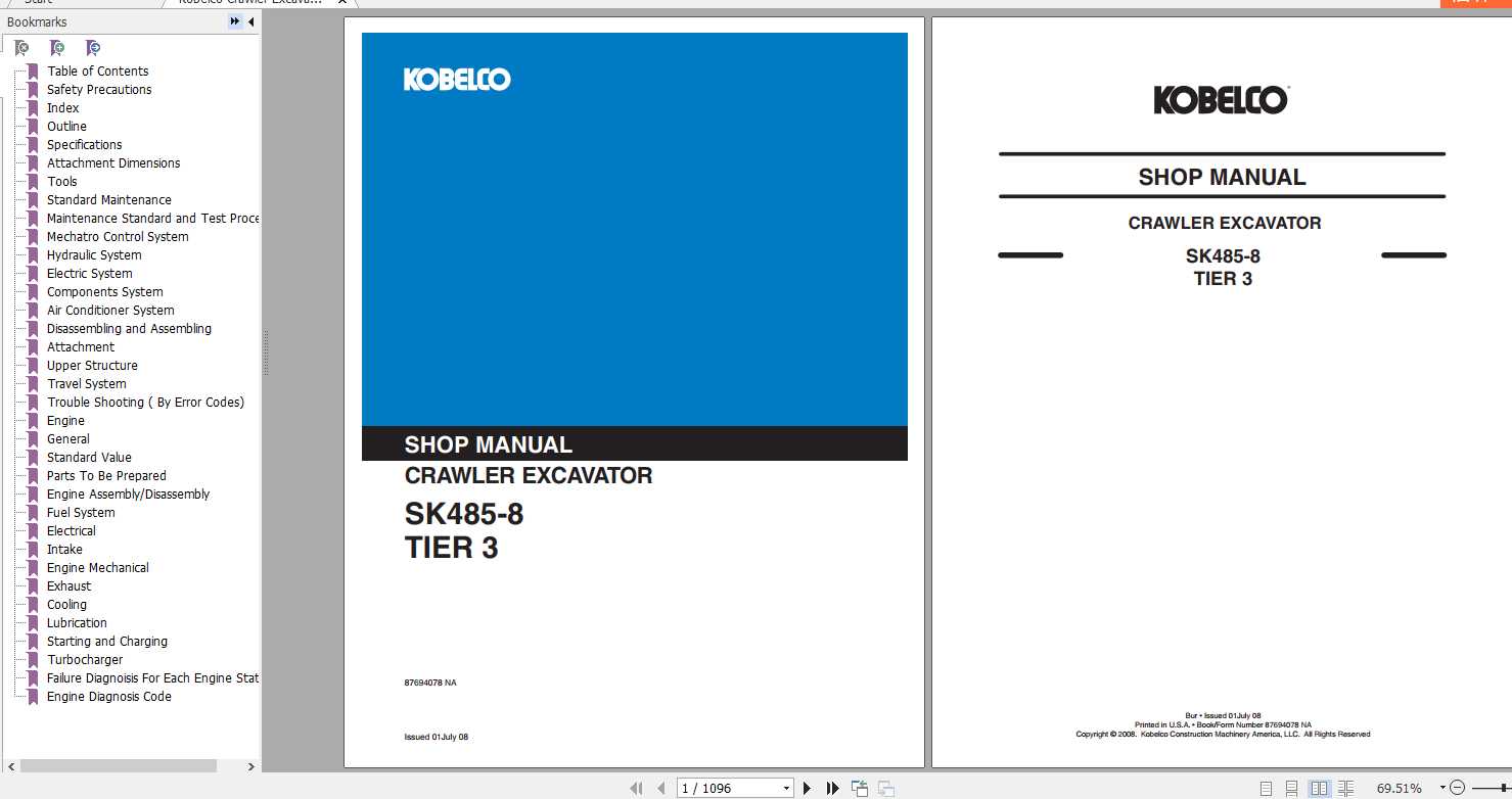 Kobelco SK485-8 Tier 3 Shop Manual 87694078