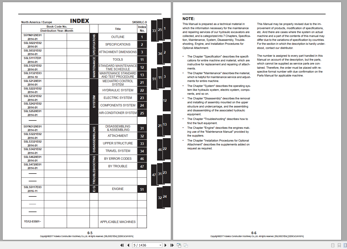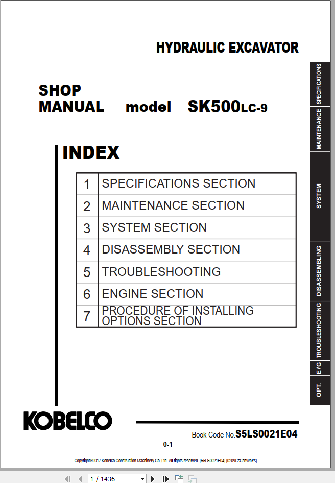 The Bookmarks of Kobelco SK500LC-9 NA Shop Manual S5LS0021E04: