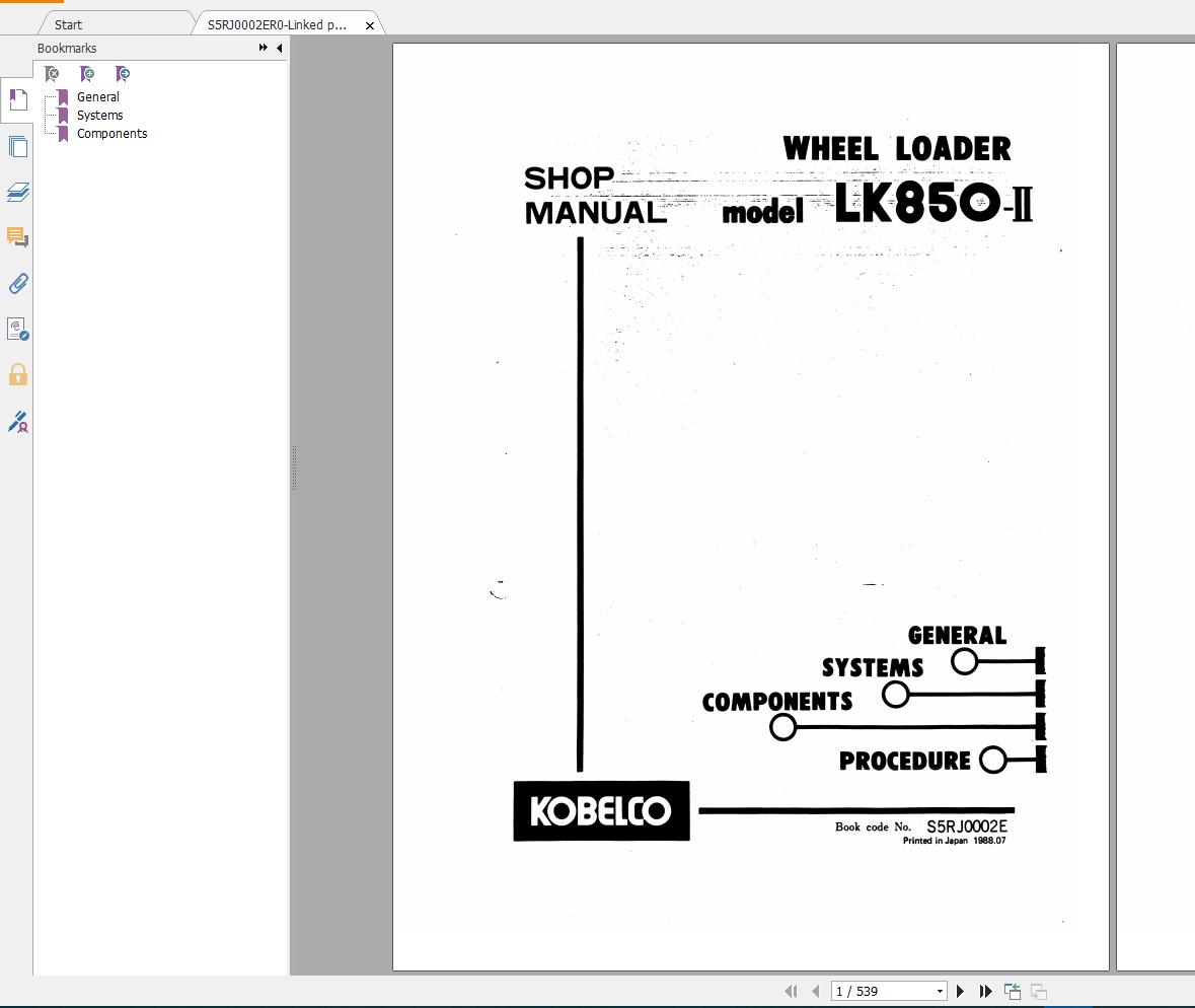 Kobelco Wheel Loader LK850-II Shop Manual_S5RJ0002ER0-Linked pdf PDF