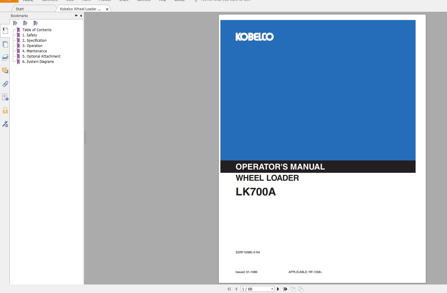 Kobelco Wheel Loader LK700A Operator's Manual PDF