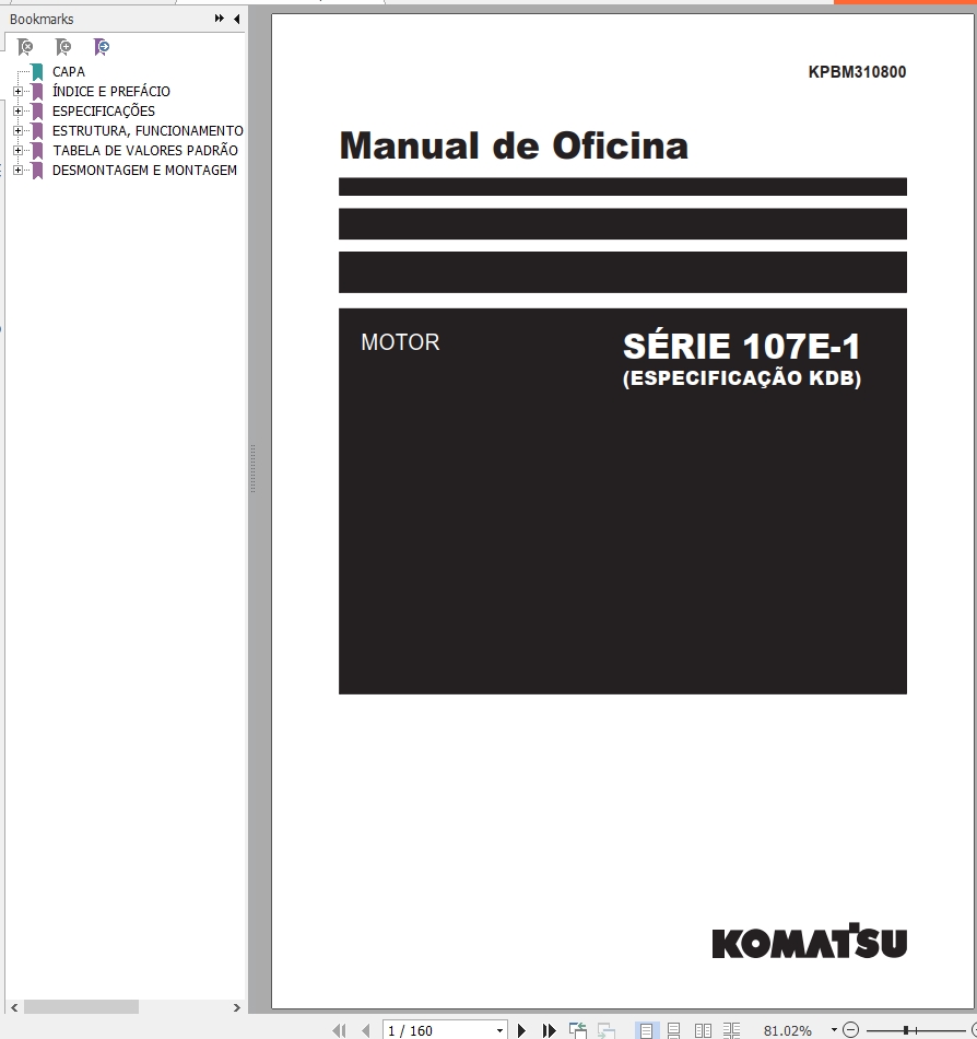 The Bookmarks of Komatsu 107E-1 Series Engine Manual de Oficina: