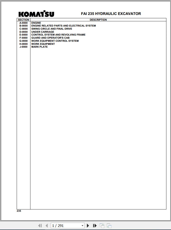 The Bookmarks of Komatsu 235 23500014 Up Spare Parts Catalog: