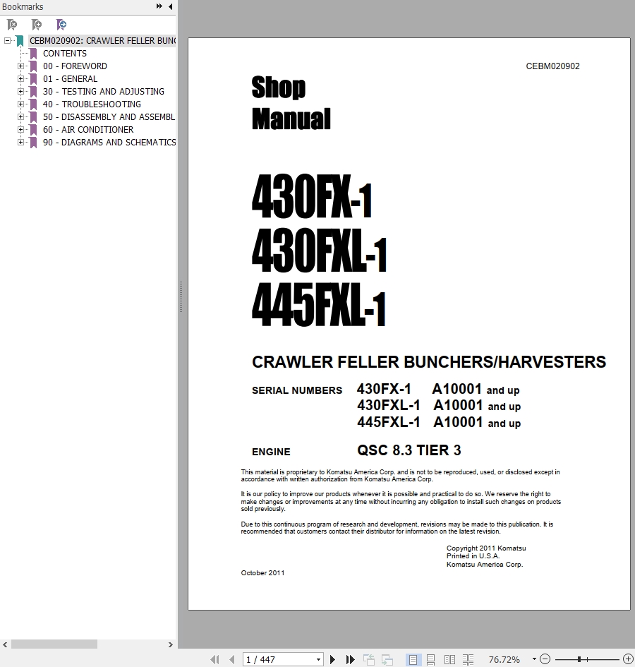 The Bookmarks of Komatsu 430FX-1 430FXL-1 445FXL-1 Crawler Feller Harvesters Shop Manual: