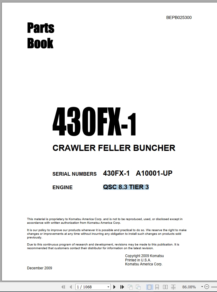 Komatsu 430FX-1 Part Book BEPB025300