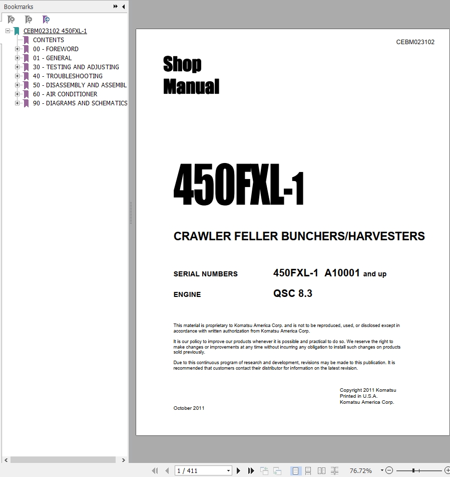 The Bookmarks of Komatsu 450FXL-1 Crawler Feller Buncher Shop Manual: