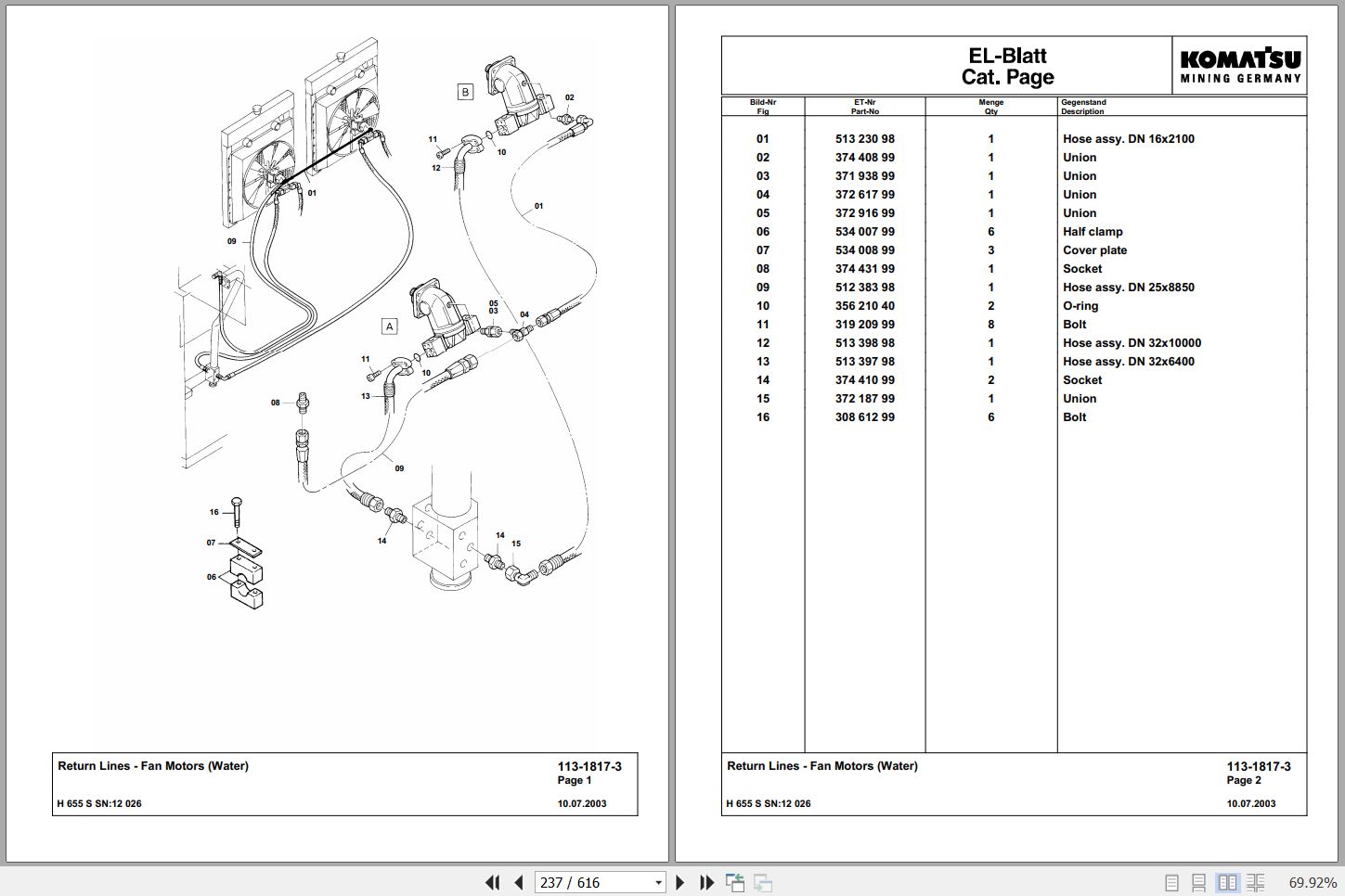 The Bookmarks of Komatsu 65H5-S 12026 Spare Parts Catalog:
