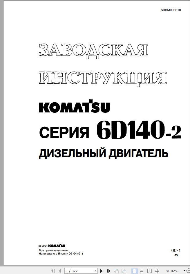 Komatsu 6D140-2 Series Shop Manual SRBM008610