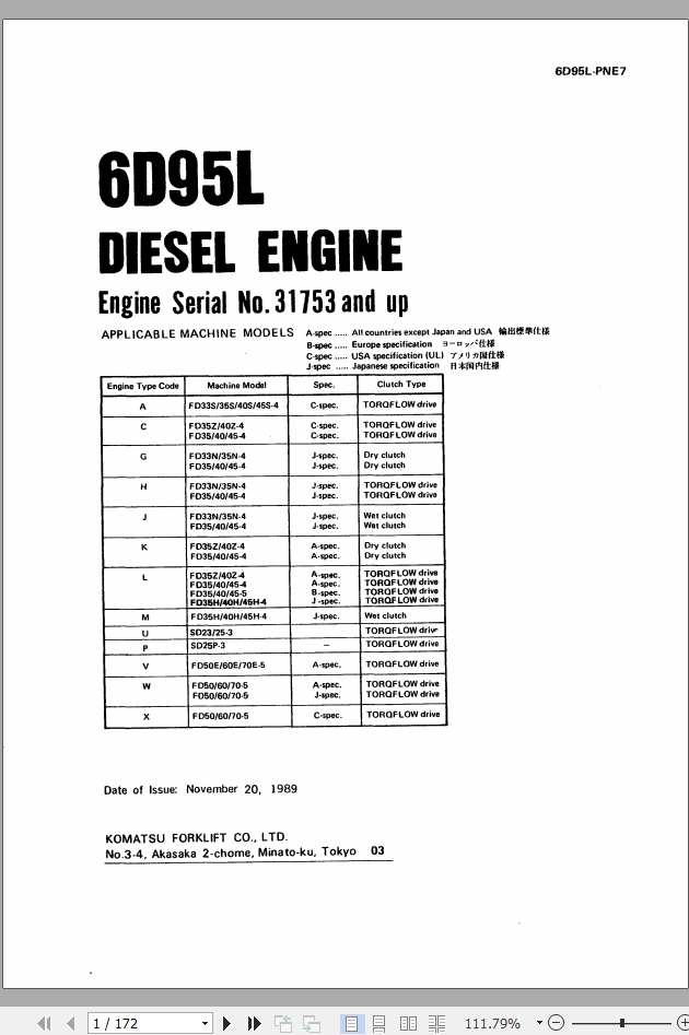 Komatsu 6D95L Part Book 6D95L-PNE7