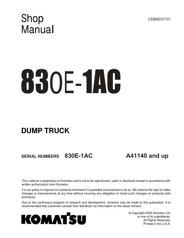 Komatsu 830E-1AC A41140-UP Shop Manual CEBM037701