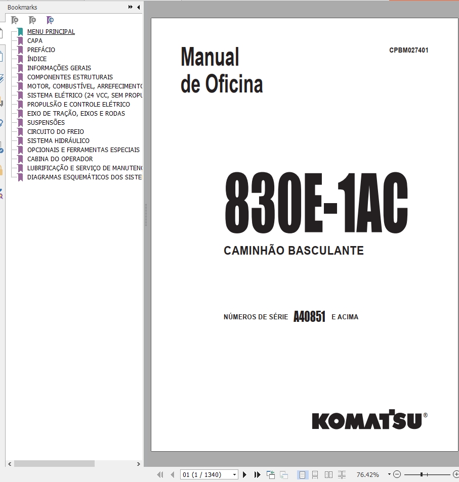 The Bookmarks of Komatsu 830E-1AC Caminhão Basculante Manual de Oficina: