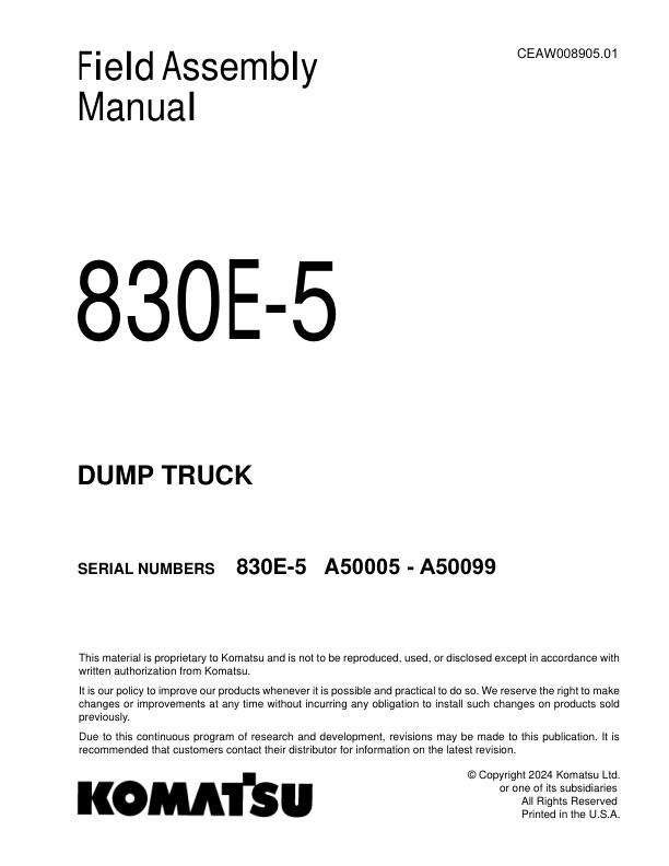 Komatsu 830E-5 A50005-A50099 Field Assembly Manual CEAW008905 01