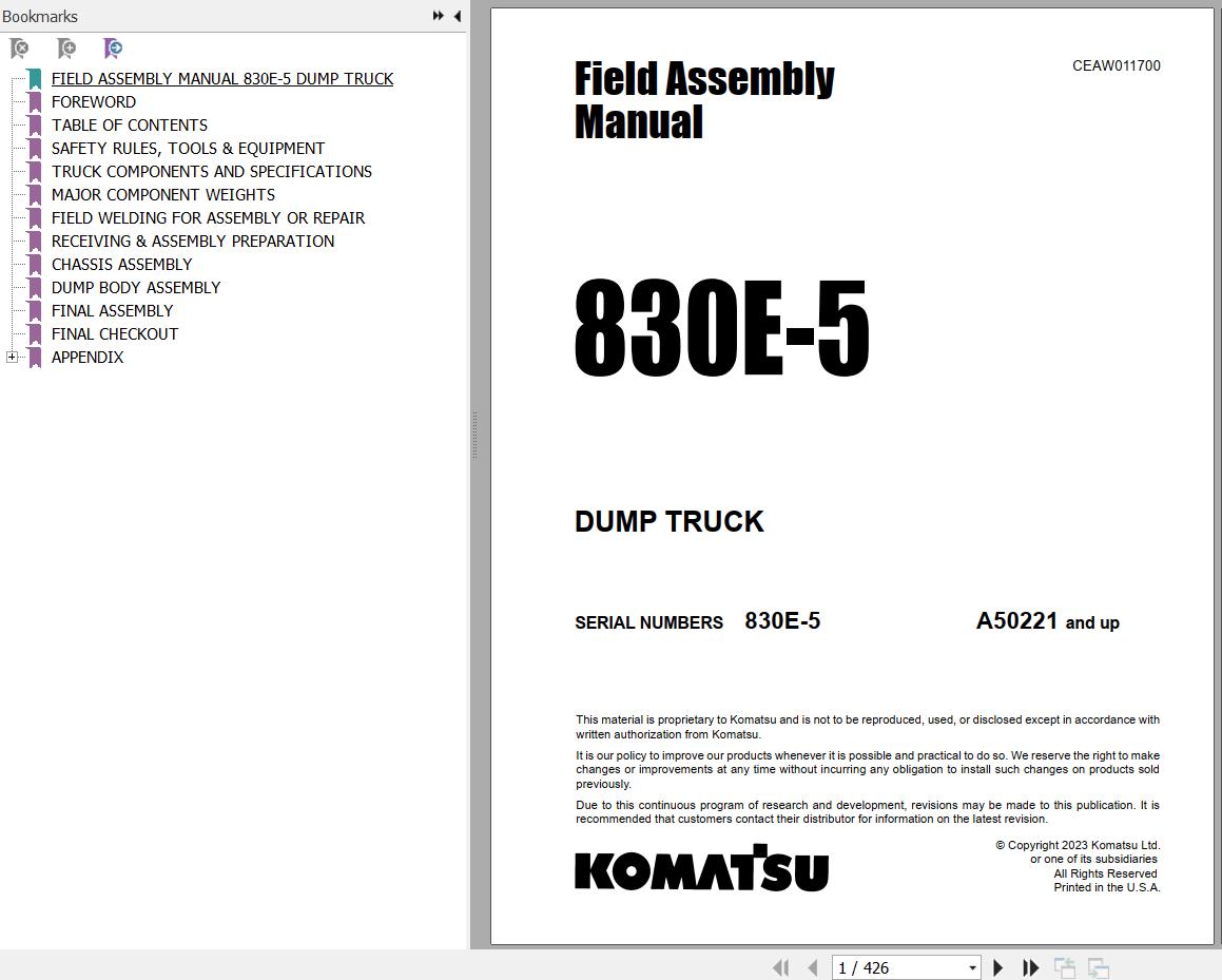 The Bookmarks of Komatsu 830E-5 Dump Truck Field Assembly Manual: