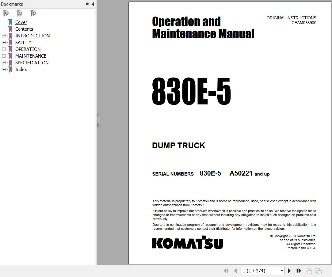 The Bookmarks of Komatsu 830E-5 Dump Truck Operation & Maintenance Manual: