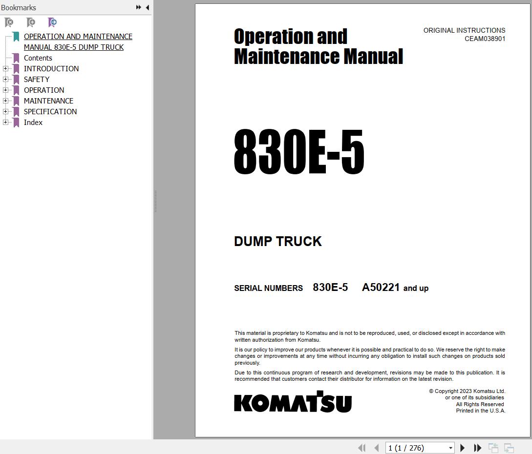 The Bookmarks of Komatsu 830E-5 Dump Truck Operation & Maintenance Manual: