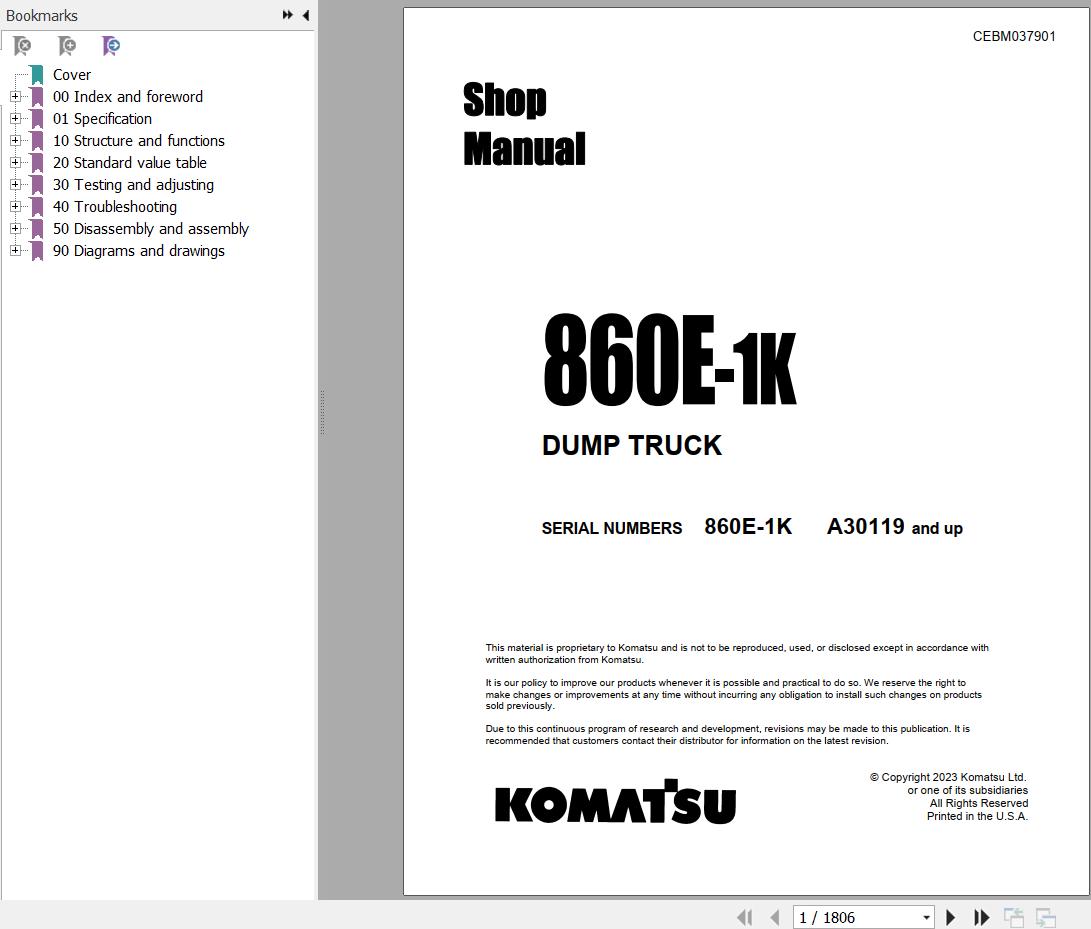 The Bookmarks of Komatsu 860E-1K Dump Truck Shop Manual: