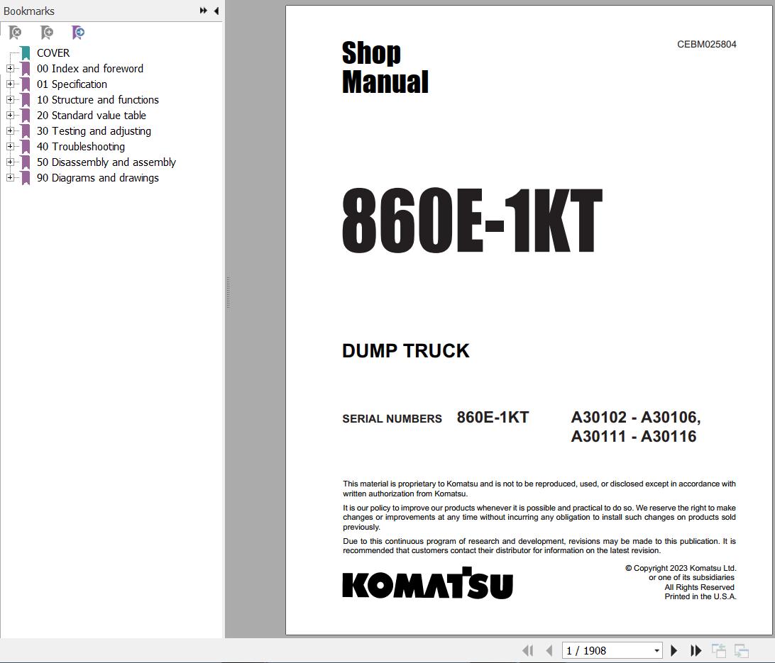 The Bookmarks of Komatsu 860E-1KT Dump Truck Shop Manual: