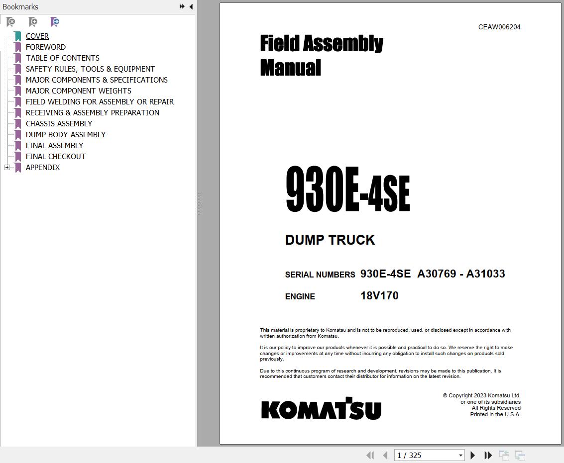 The Bookmarks of Komatsu 930E-4SE Dump Truck Field Assembly Manual: