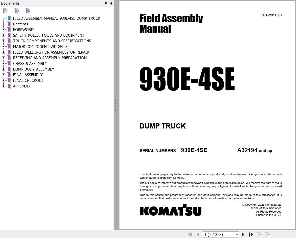Komatsu 930E-4SE Field Assembly Manual CEAW011301