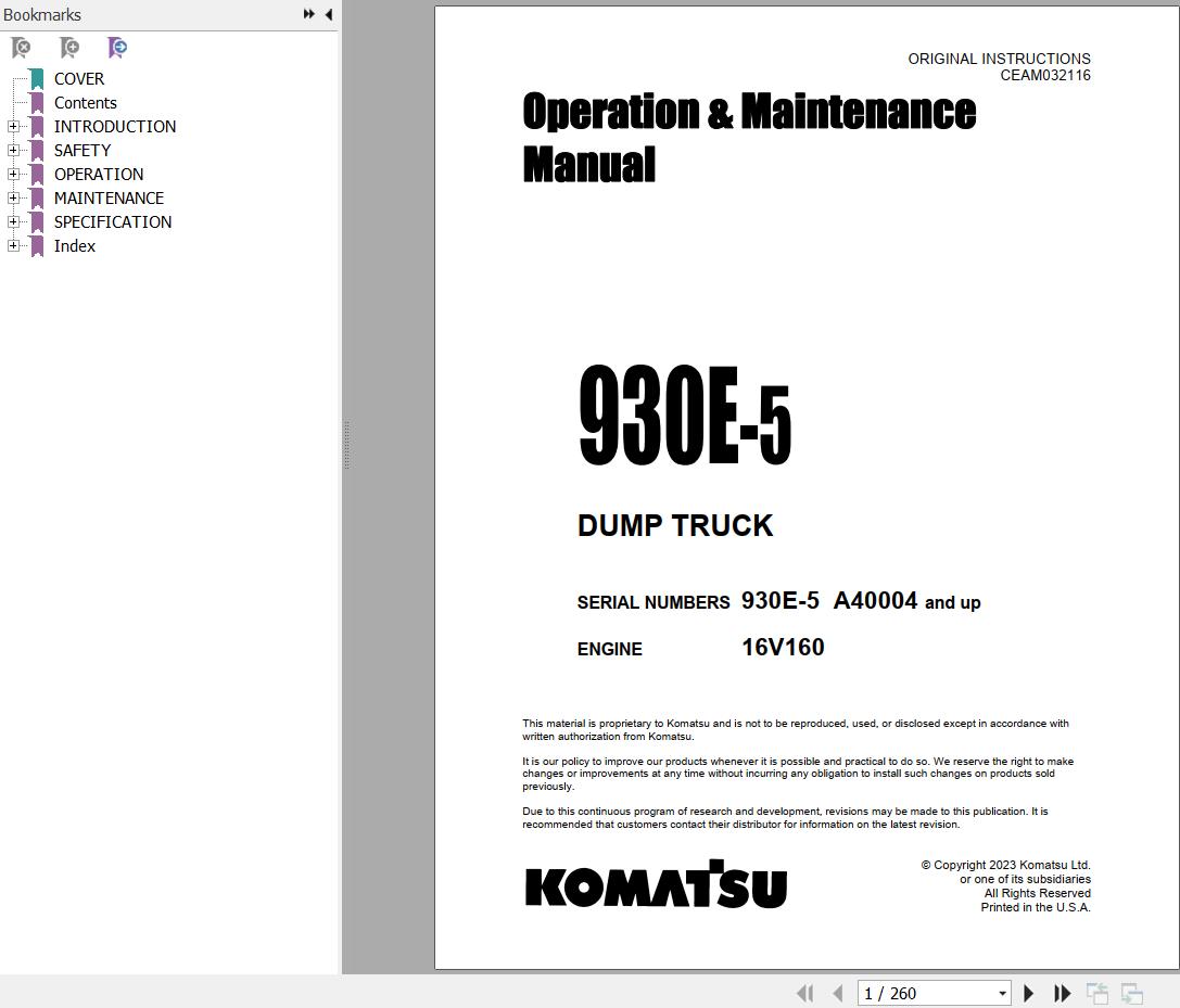 Komatsu 930E-5 Operation & Maintenance Manual CEAM032116