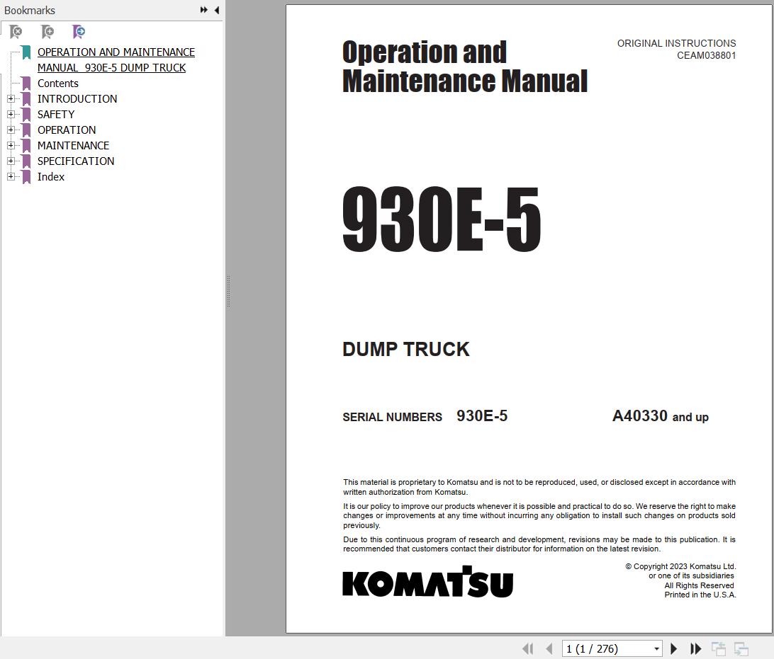 Komatsu 930E-5 Operation & Maintenance Manual CEAM038801