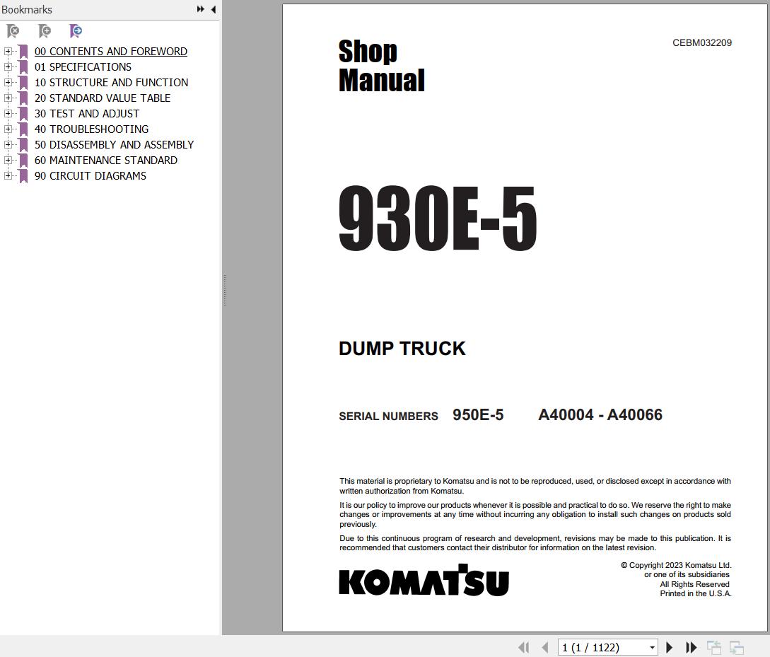 The Bookmarks of Komatsu 930E-5 Dump Truck Shop Manual: