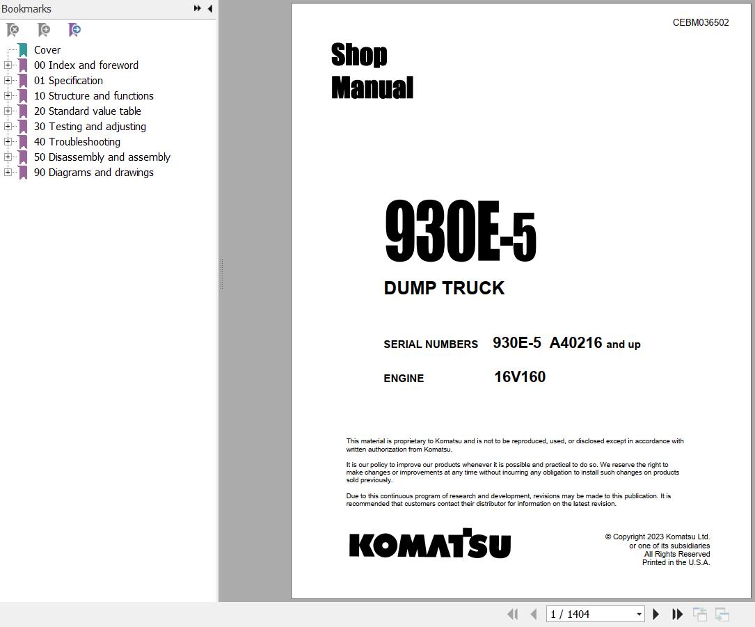 The Bookmarks of Komatsu 930E-5 Dump Truck Shop Manual: