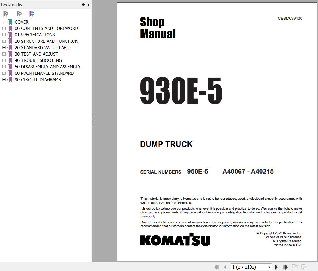 Komatsu 930E-5 Shop Manual CEBM039400