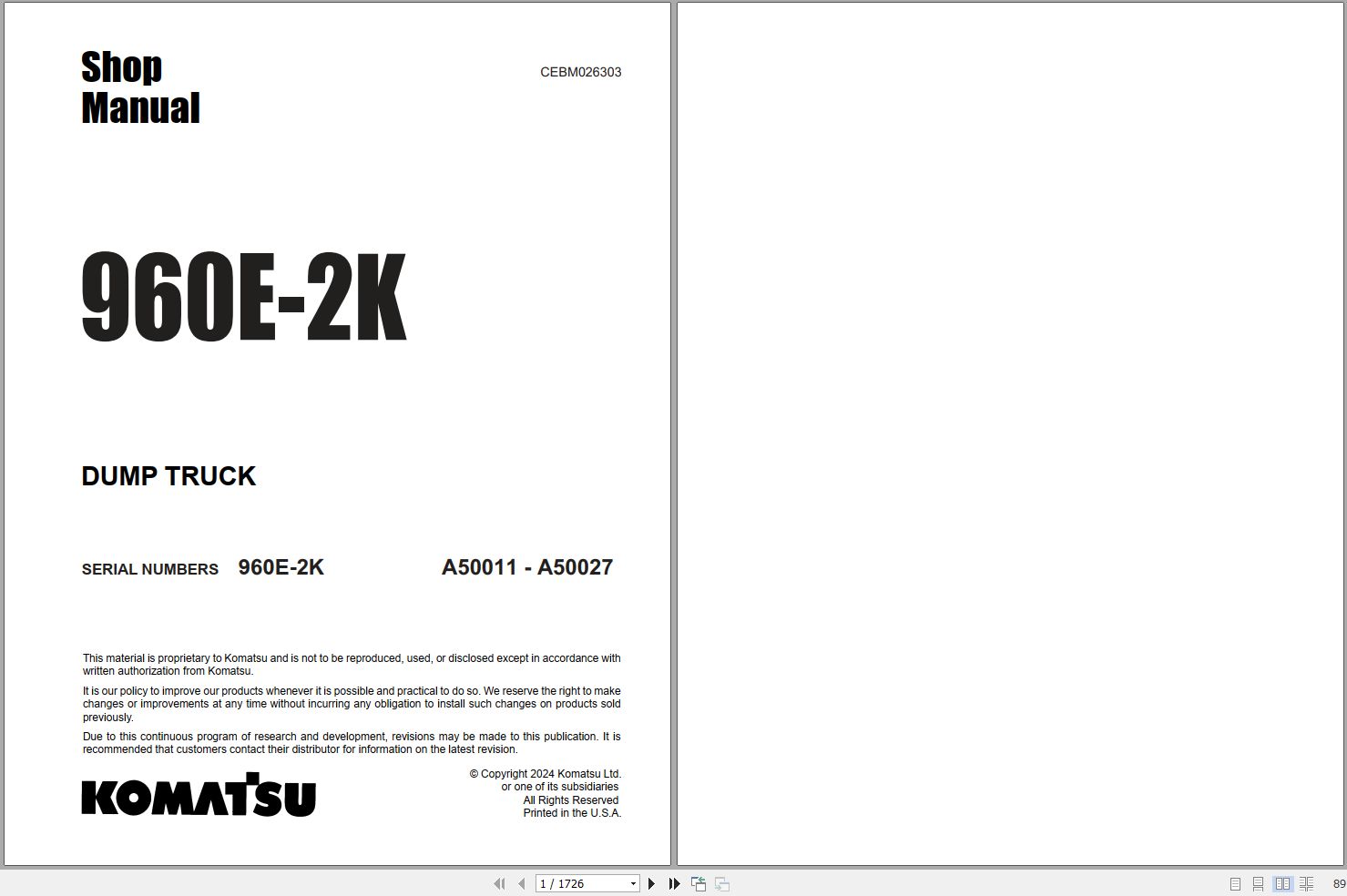 Document: Shop Manual, Error Code, Electrical Schematic, Hydraulic Schematic