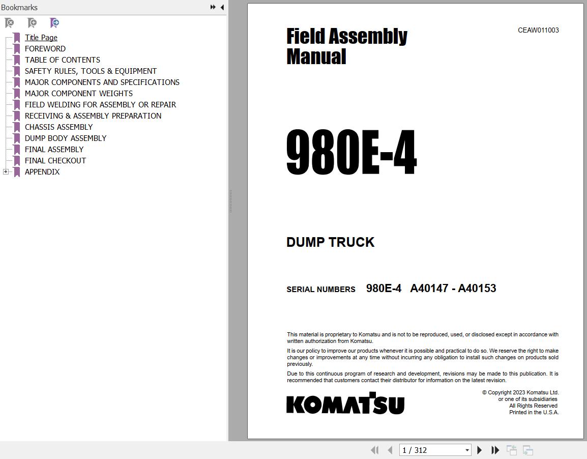 The Bookmarks of Komatsu 980E-4 Dump Truck Field Assembly Manual: