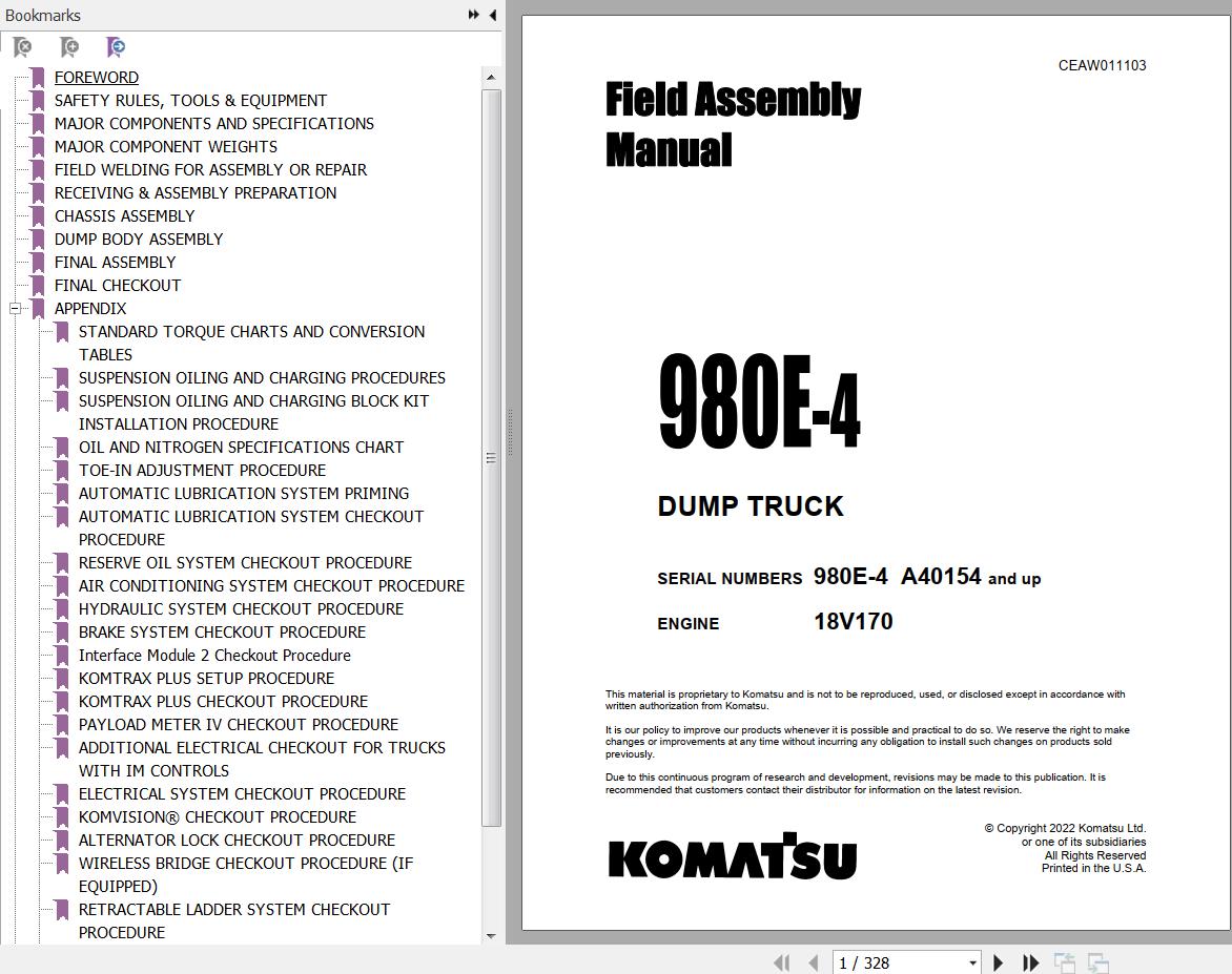 The Bookmarks of Komatsu 980E-4 Dump Truck Field Assembly Manual: