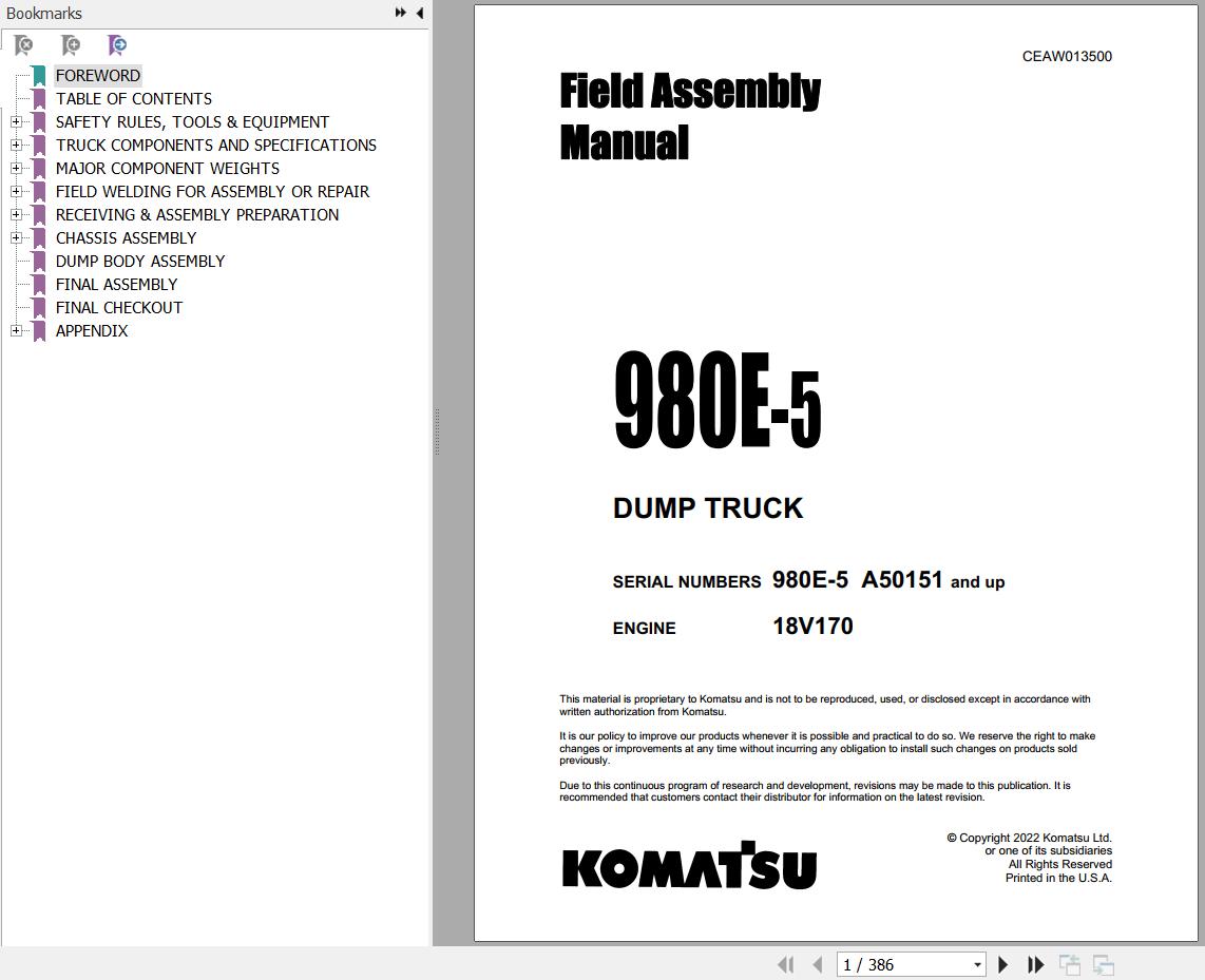 The Bookmarks of Komatsu 980E-5 Dump Truck Field Assembly Manual: