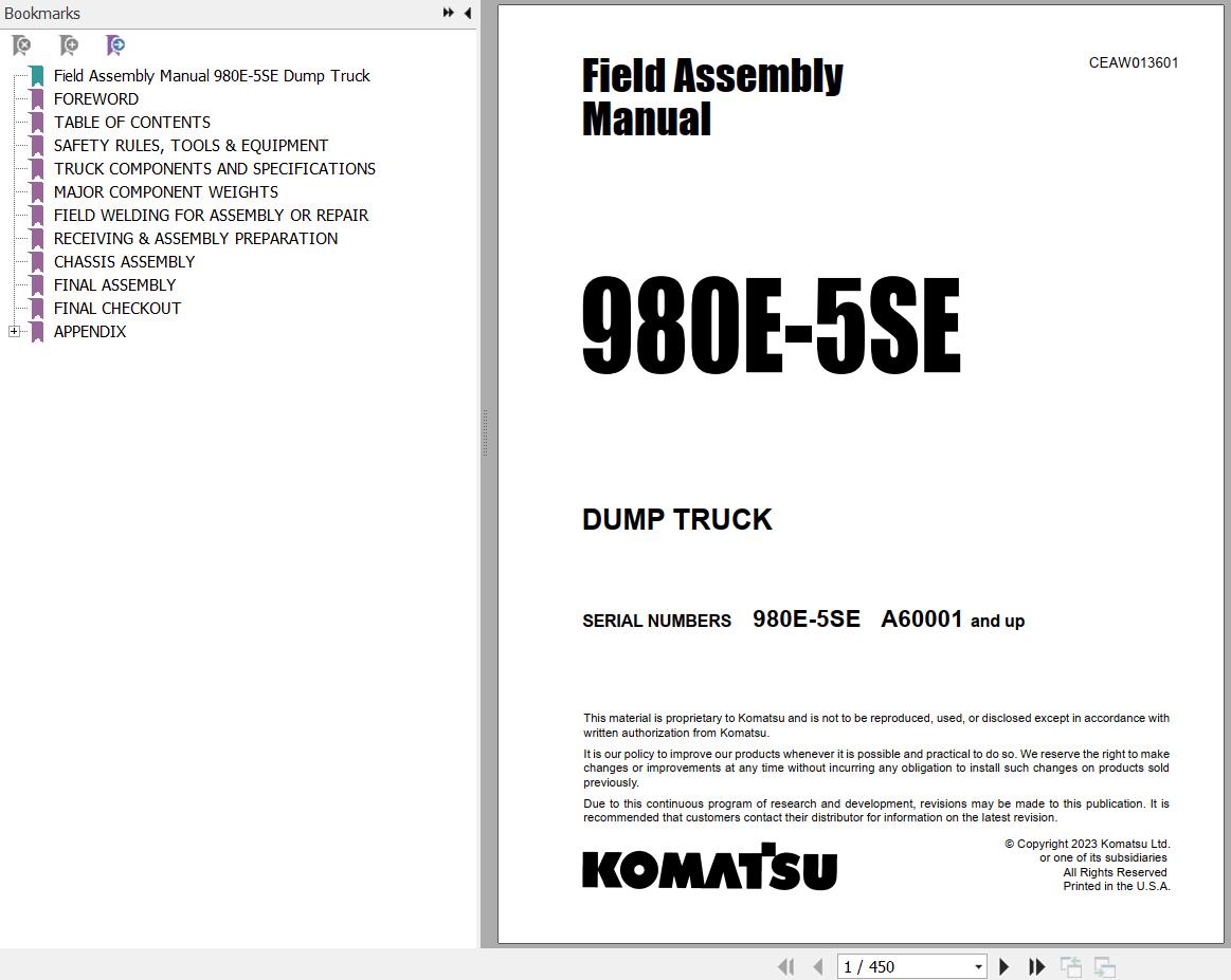 The Bookmarks of Komatsu 980E-5SE Dump Truck Field Assembly Manual: