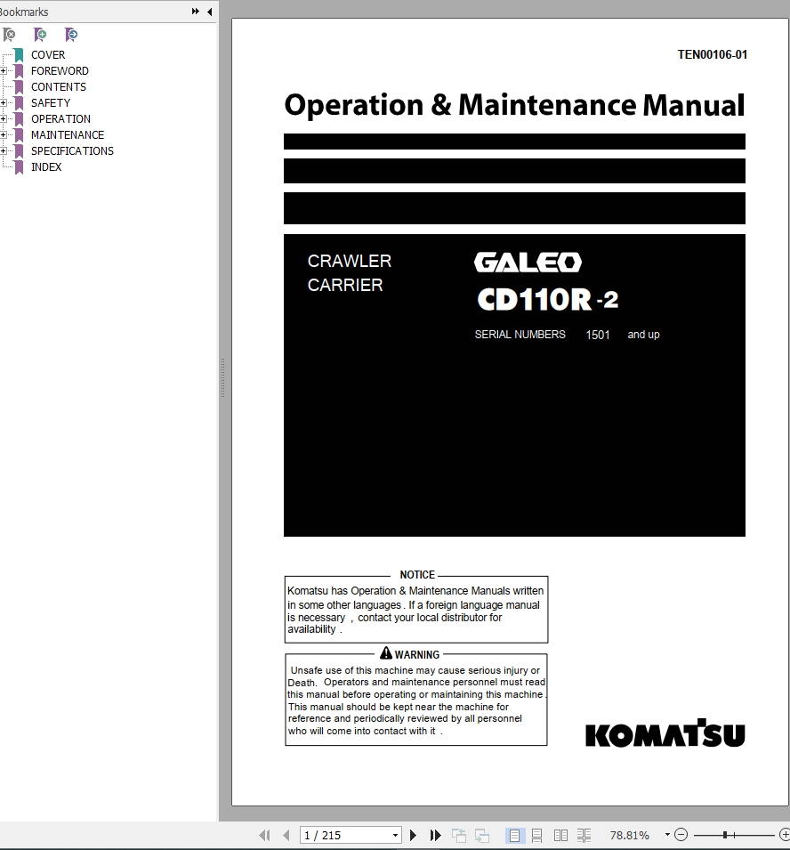 The Bookmarks of Komatsu CD110R-2 Crawler Carrier Operation & Maintenance Manual: