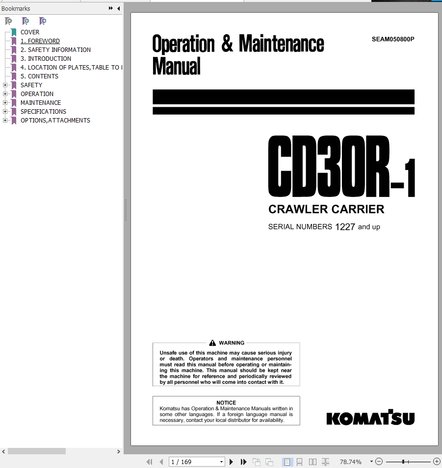 Komatsu CD30R-1 Operation & Maintenance Manual SEAM050800P