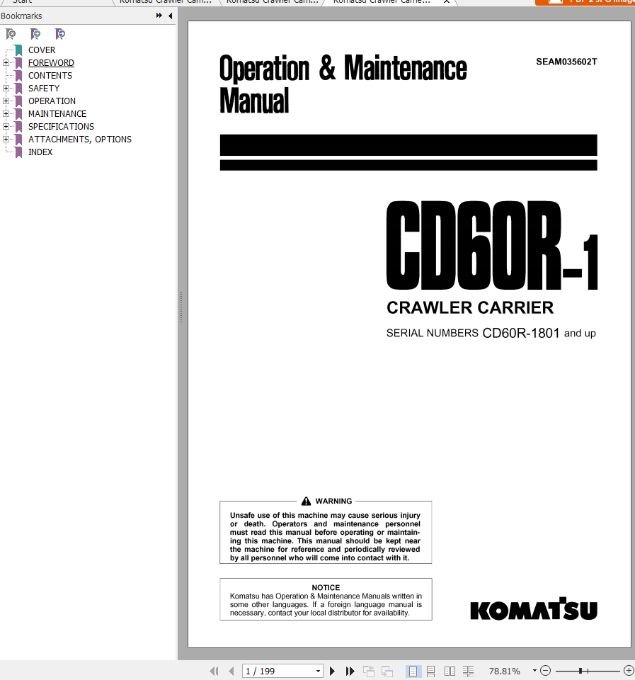 The Bookmarks of Komatsu CD60R-1 Crawler Carrier Operation & Maintenance Manual: