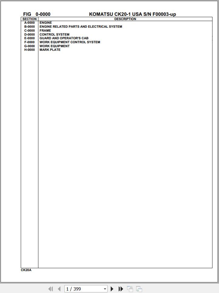 The Bookmarks of Komatsu CK20-1 USA F00003 Up Spare Parts Catalog: