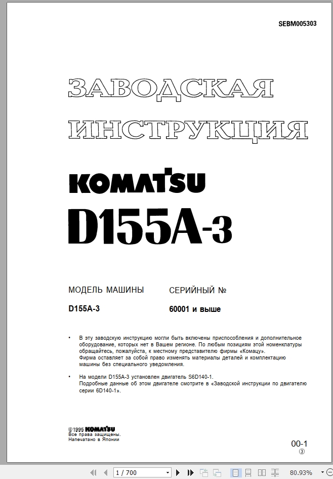 Komatsu D155A-3 Shop Manual SRBM005303