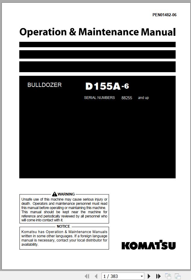 Komatsu D155A-6 Operation & Maintenance Manual PEN01482-06