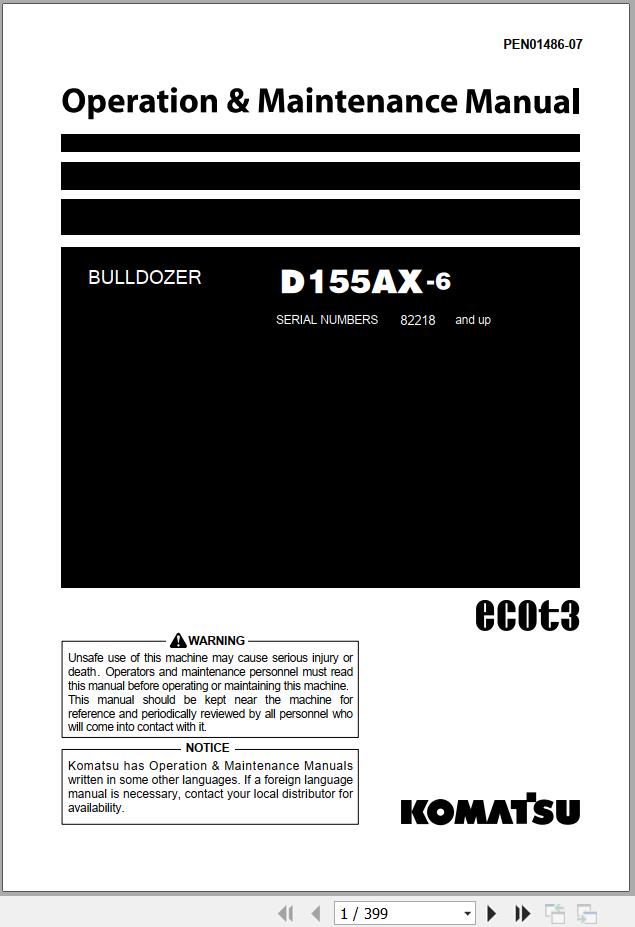 Komatsu D155AX-6 Operation & Maintenance Manual PEN01486-07