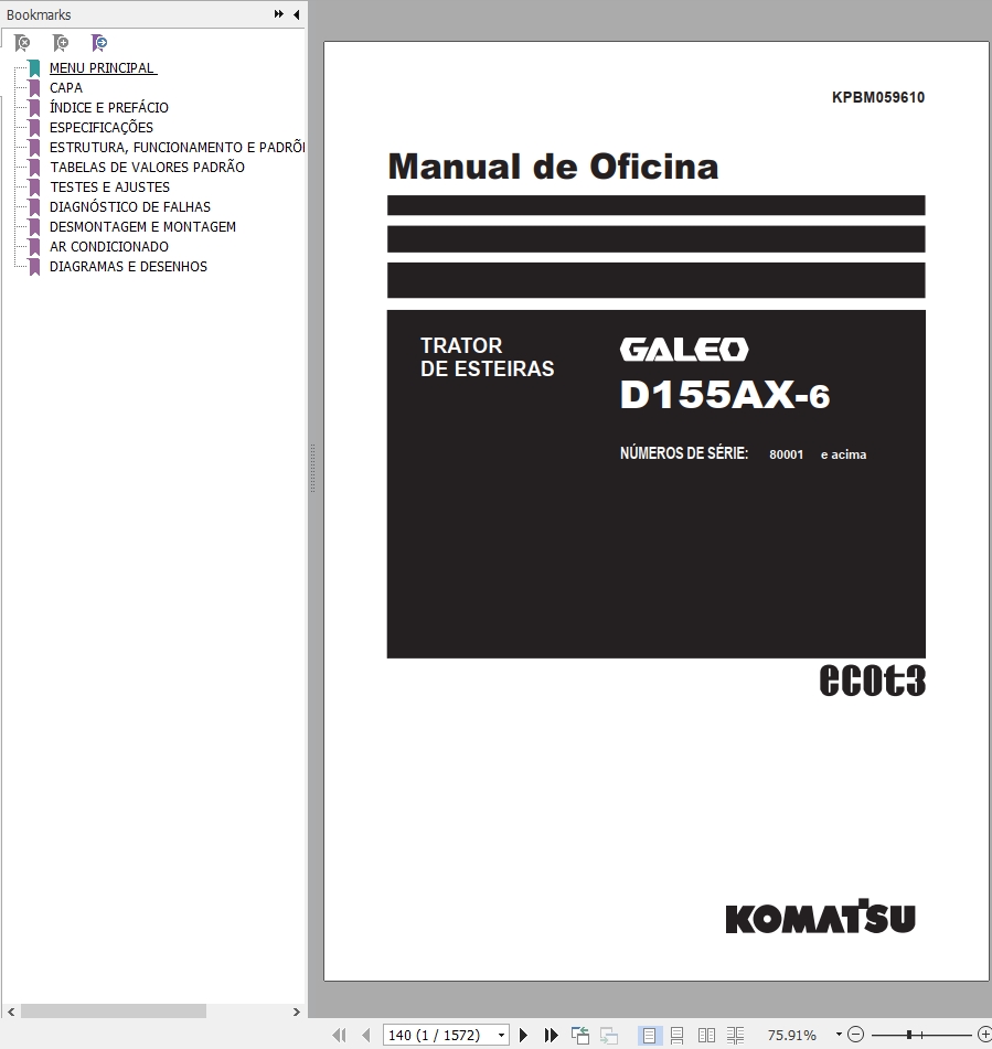 The Bookmarks of Komatsu D155AX-6 Trator De Esteiras Manual de Oficina: