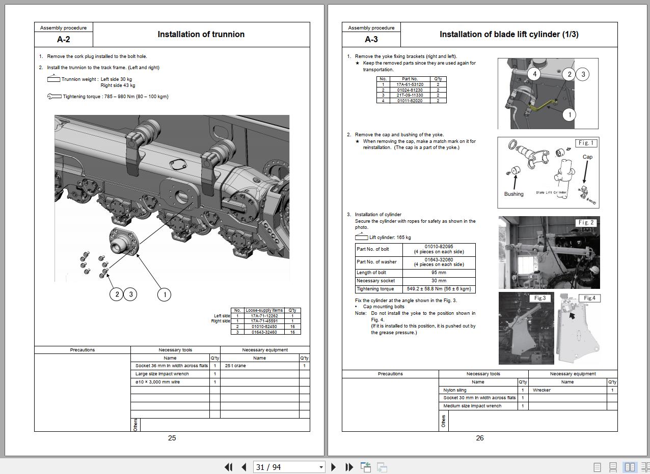 The Bookmarks of Komatsu D155AX-7 Bulldozer Field Assembly Manual: