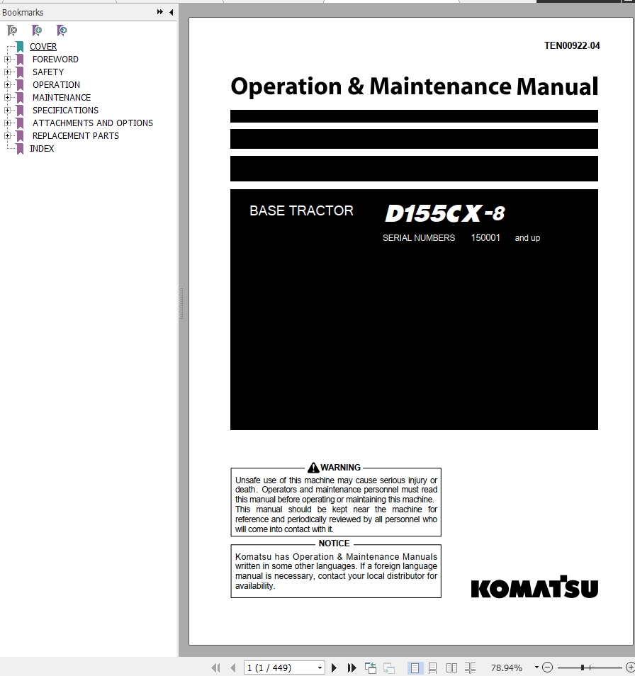 Komatsu D155CX-8 Operation & Maintenance Manual TEN00922-04