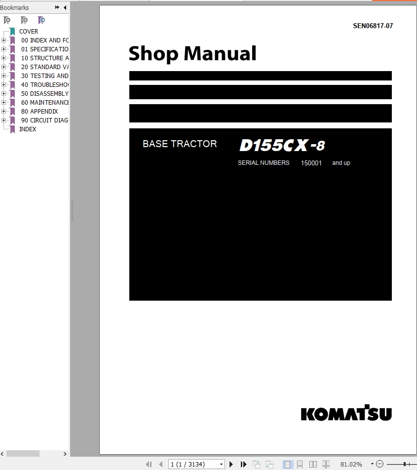 The Bookmarks of Komatsu D155CX-8 Base Tractor Shop Manual: